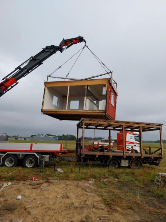 Før klubhuset kunne flyttes, skulle der indhentes tilladelser, ryddes et tæt bevokset område ved banen og etableres et stabilt underlag til både klubhus, containere og parkering. Det krævede et enormt frivilligt engagement, hvor medlemmer, forældre og ildsjæle lagde utallige timer i projektet for at få det hele til at lykkes.